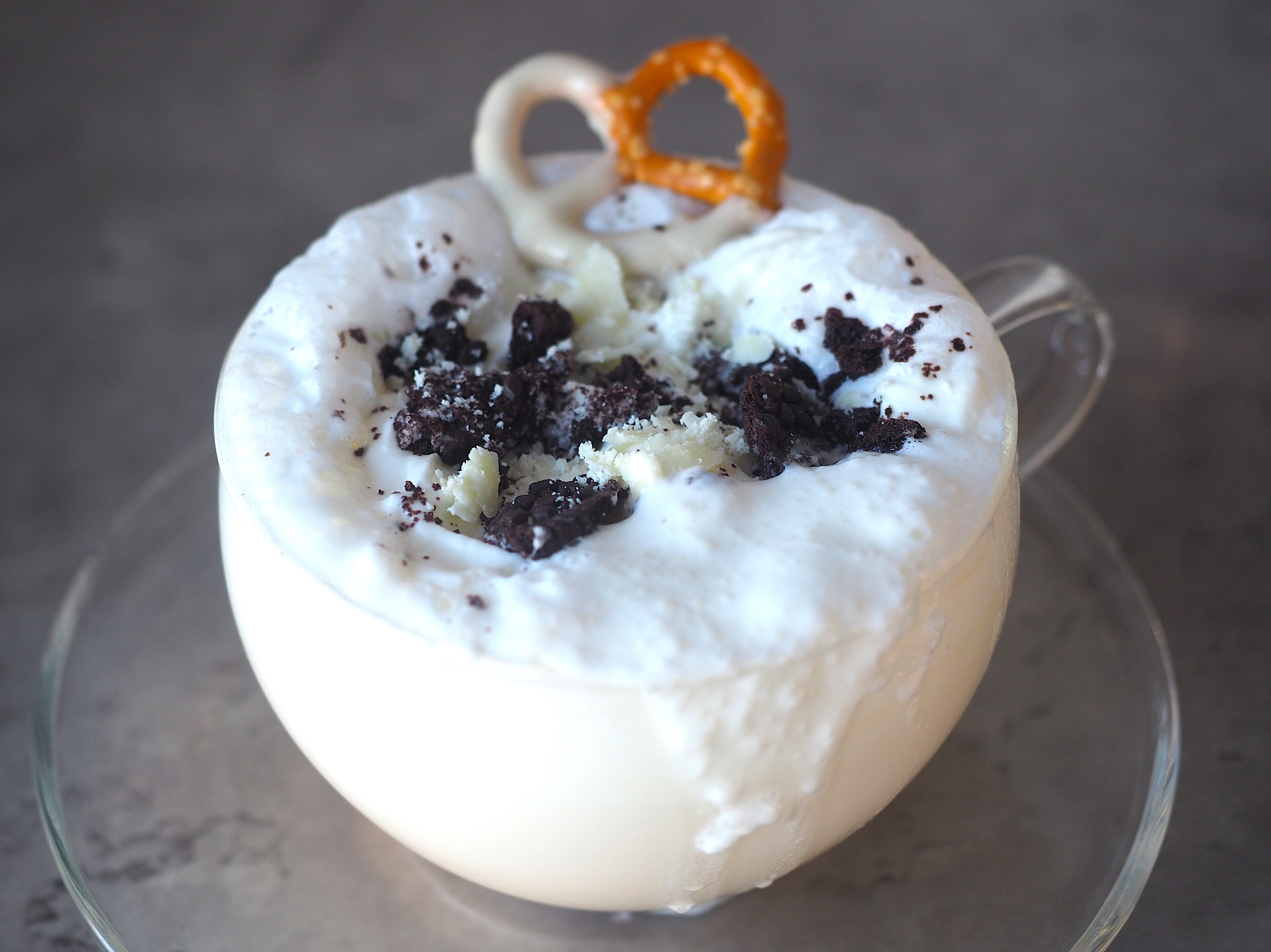 生クリームに砕いたオレオとホワイトチョコプレッツェルをトッピング!